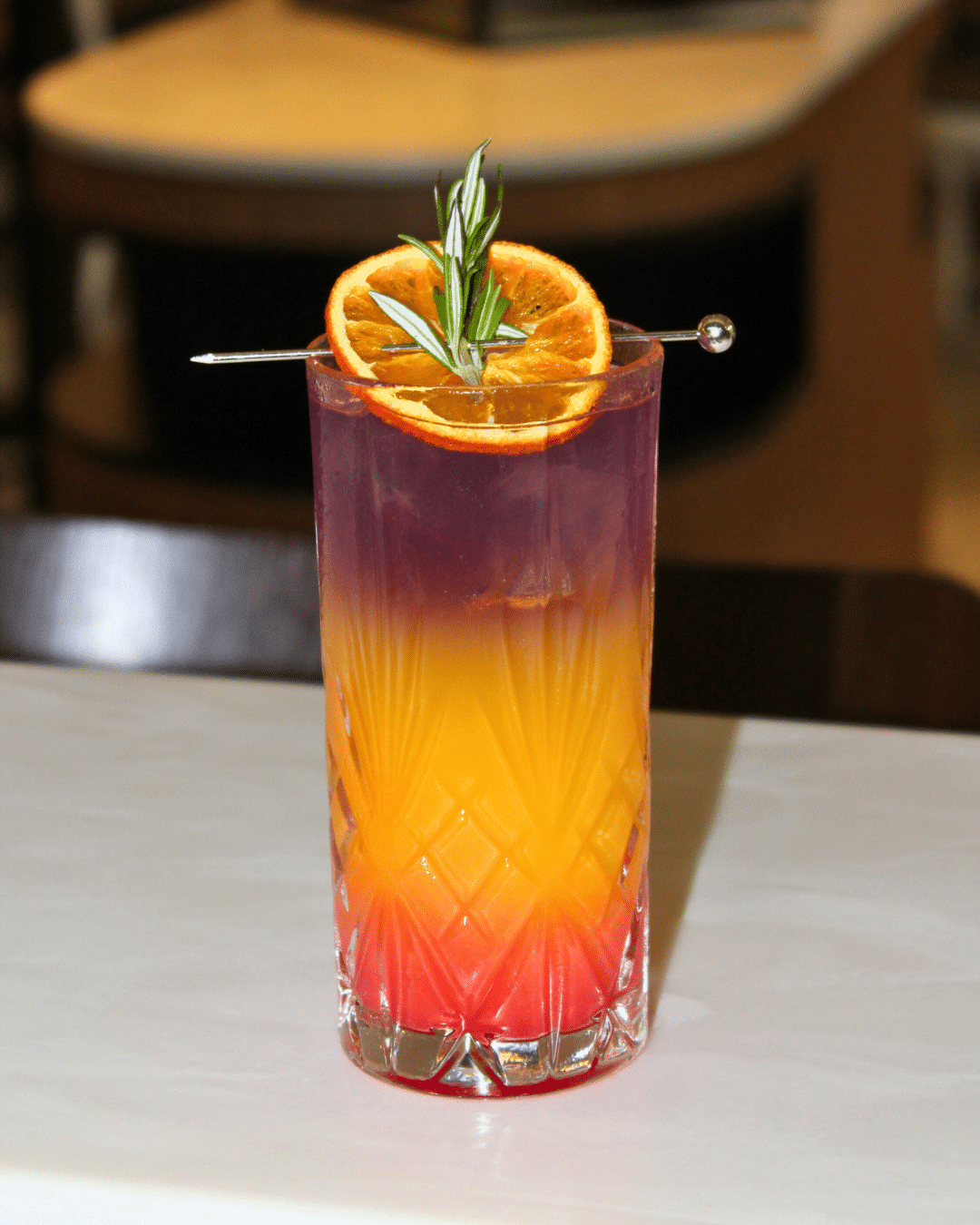 Autumn Sunset is a beautifully crafted cocktail that captures the essence of seasonal change. A vibrant mix of Ink Gin, fresh orange and lemon juices, and a hint of grenadine creates a perfectly balanced, refreshing taste. Finished with a delicate rosemary sprig and a dried orange wheel, this cocktail is as visually stunning as it is flavorful – the perfect way to unwind and savor the spirit of autumn evenings.